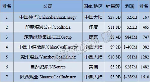 2016ÄêÈ«Çòú̿ÆóÒµÅÅÐаñ