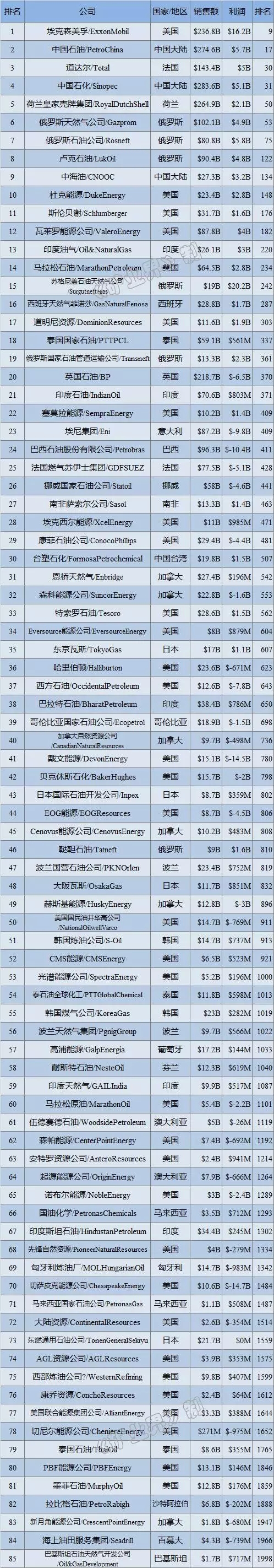 2016ÄêÈ«ÇòÓÍÆø¹«Ë¾ÅÅÐаñ