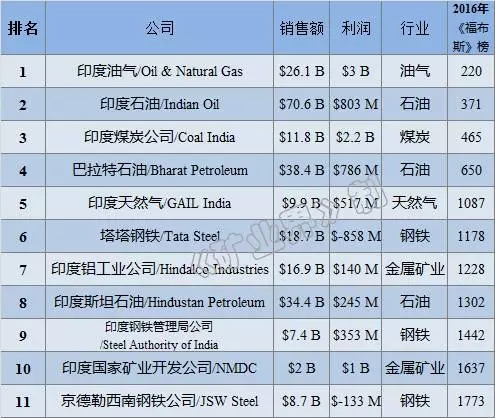 2016ÄêÓ¡¶È¿óÒµ¹«Ë¾ÅÅÐаñ