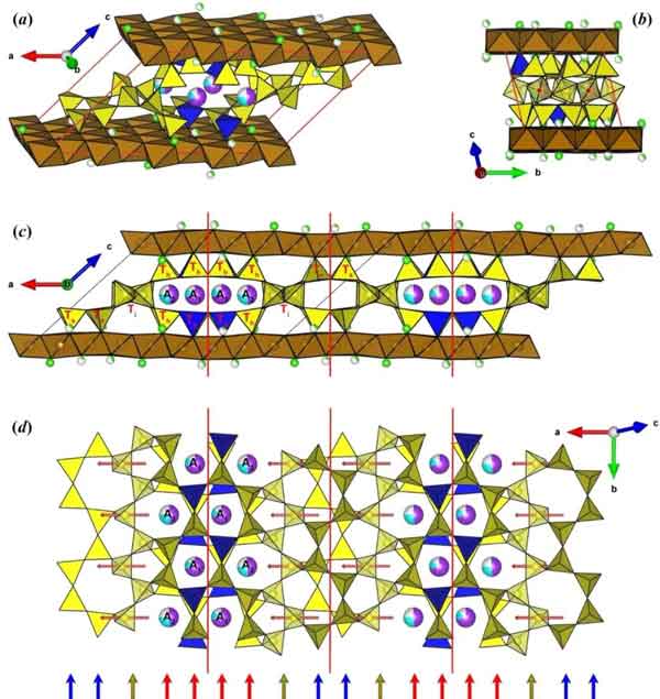 ÃÀ·ò¹èÌúʯΪT-O-TÐͲã×´¹èËáÑΣ¨Í¼1£©£¬£¬£¬£¬Èýб¾§Ïµ£¬£¬£¬£¬¿Õ¼äȺP`1£¬£¬£¬£¬¾§°û²ÎÊý£ºa=22.7773(13) ?, b=9.5553(5) ?, c=14.3282(8) ?, ¦Á=99.258(4)¡ã, ¦Â=136.750(3)¡ã, ¦Ã=89.899(4)¡ã, V=2077.9(2) ?3.