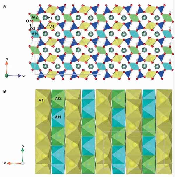 ÖØÏ¡ÍÁºÍ·°ÔÚº½¿Õº½Ìì¡¢¹ú·À¹¤ÒµºÍÐÂÄÜÔ´ÁìÓòÓ¦ÓÃÆÕ±é£¬£¬£¬£¬¾ùÊǼ«¾ßÕ½ÂÔÒâÒåµÄ¡°¸ß¿Æ¼¼ÔªËØ¡±¡£¡£È»¶ø£¬£¬£¬£¬×ÔÈ»½çÖÐͬʱº¬ÓÐÖØÏ¡ÍÁºÍ·°µÄ¿óÎKÆäÓÐÊý¡£¡£ÕâһпóÎïÊÇÔÚ×ÔÈ»½çÖÐÊ״η¢Ã÷µÄº¬ÖØÏ¡ÍÁºÍ·°µÄ¹èËáÑοóÎ£¬£¬£¬¾ßÓÐÈ«ÐµĻ¯Ñ§×é³ÉºÍȫо§Ìå½á¹¹ÀàÐÍ£¬£¬£¬£¬¶Ô¾§Ì廯ѧ¾ßÓÐÌØÊâµÄÒâÒ壬£¬£¬£¬Æä¾§Ì廯ѧʽΪY2Al2V2(SiO4)2O4(OH)4£¬£¬£¬£¬ÊôÓÚµ¥Ð±¾§Ïµ£¬£¬£¬£¬¾§°û²ÎÊýa=9.4821(2)?, b=5.8781(1) ?, c=19.3987(4)?, V = 1081.21(4)?3¡£¡£