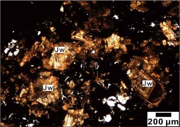 ͼ2 ¾°ÎÄ¿óÏÔ΢¾µÏÂ͸Éä¹âÕÕÆ¬£¨Jw=jingwenite£©