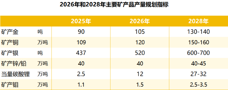 ÔÚ²úÁ¿ºÍ¾¼ÃÖ¸±êά¶È£¬£¬£¬¹«Ë¾Î´À´ÈýÄêÖ÷Òª¿ó²úÆ·²úÁ¿ÈÔ½«´ó·ùÔöÌí£º¿ó²ú½ð¡¢¿ó²úÍ¡¢¿ó²úÒø¡¢µ±Á¿Ì¼Ëáﮡ¢¿ó²úîâ2028Äê²úÁ¿ÍýÏë»®·ÖΪ130-140¶Ö¡¢150-160Íò¶Ö¡¢600-700¶Ö¡¢27-32Íò¶Ö¡¢2.5-3.5Íò¶Ö£¬£¬£¬»®·Ö½Ï2025ÄêÔöÌí44%-56%¡¢38%-47%¡¢37%-60%¡¢980%-1180%¡¢127%-218%¡£¡£¡£¡£¡£½ìʱ£¬£¬£¬¹«Ë¾³ý¿ó²ú½ð¡¢¿ó²úÍÈ«ÇòÅÅÃû¼ÌÐø½øÎ»ÒÔÍ⣬£¬£¬ÒàÓÐÍû³ÉΪȫÇò×î´óµÄﮡ¢îâÉú²úÆóÒµÖ®Ò»¡£¡£¡£¡£¡£